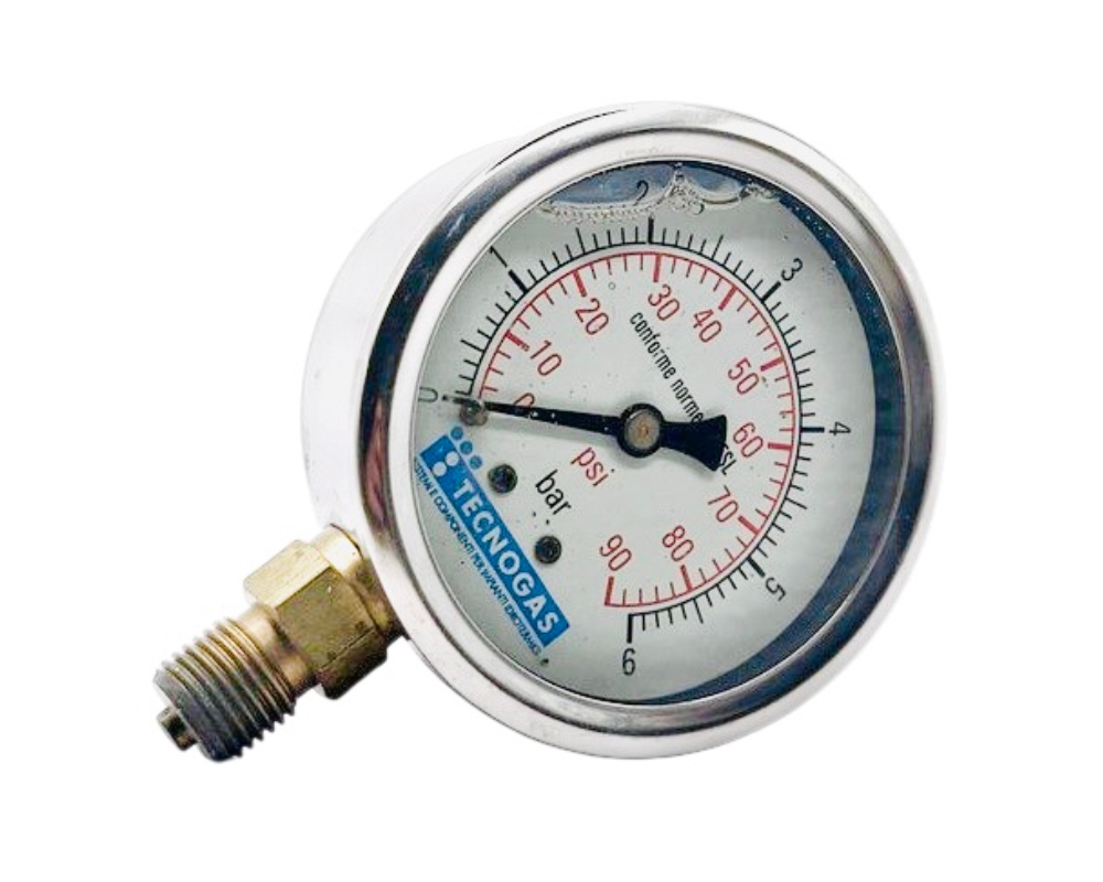 Manometr sprężynowy glicerynowy przeznaczony do pomiaru ciśnienia gazu w instalacjach gazowych, gdzie występują drgania, pulsacje lub zmienne warunki pracy. Zakres pomiarowy 0–6 bar umożliwia kontrolę ciśnienia w instalacjach LPG oraz w układach technicznych wymagających stabilnego i czytelnego odczytu.