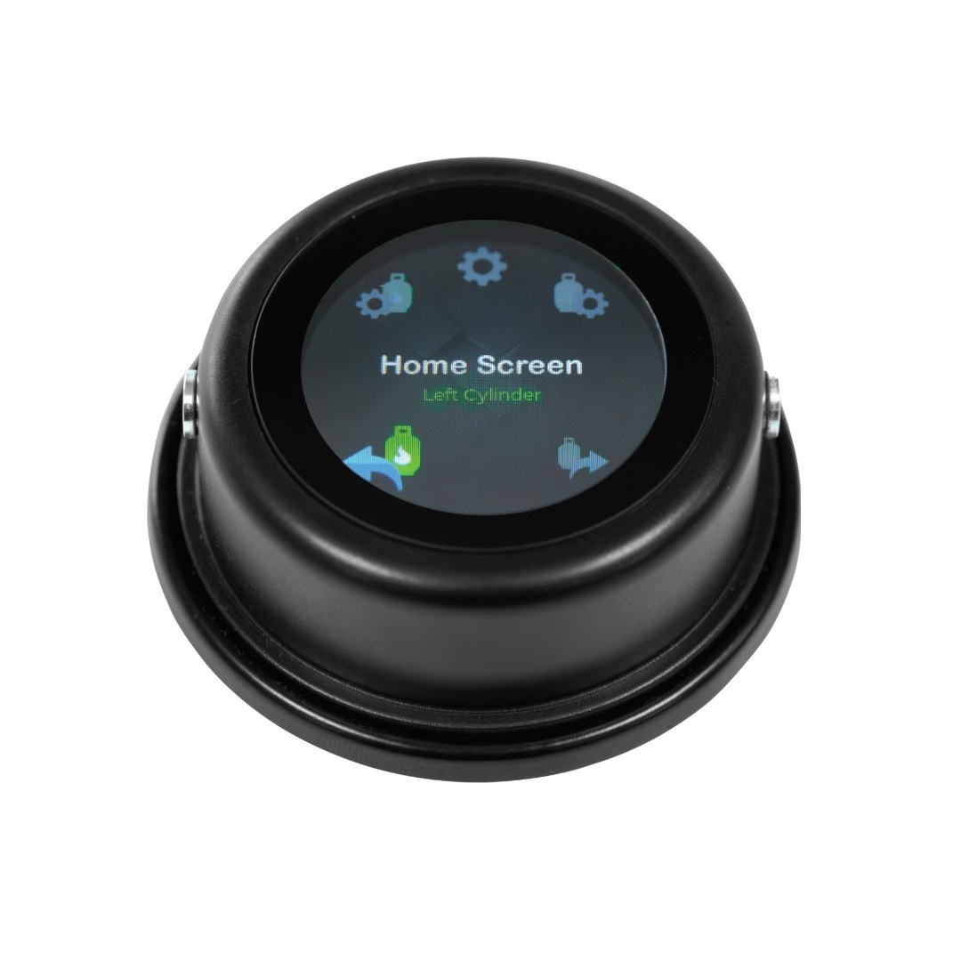 Łączy się z ultradźwiękowym miernikiem poziomu gazu Mopeka Pro i wyświetla wskazania miernika w czasie rzeczywistym, przez co zastępuje użycie aplikacji mobilnej zainstalowanej na smartfonie.