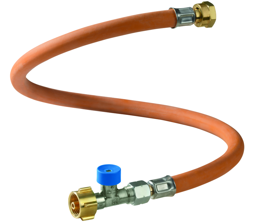 Wąż wysokiego ciśnienia o długości 45 cm z zabezpieczeniem przed wypływem gazu w przypadku uszkodzenia węża. Wąż stosuje się w instalacjach gazowych w pojazdach: kamperach i przyczepach kempingowych.